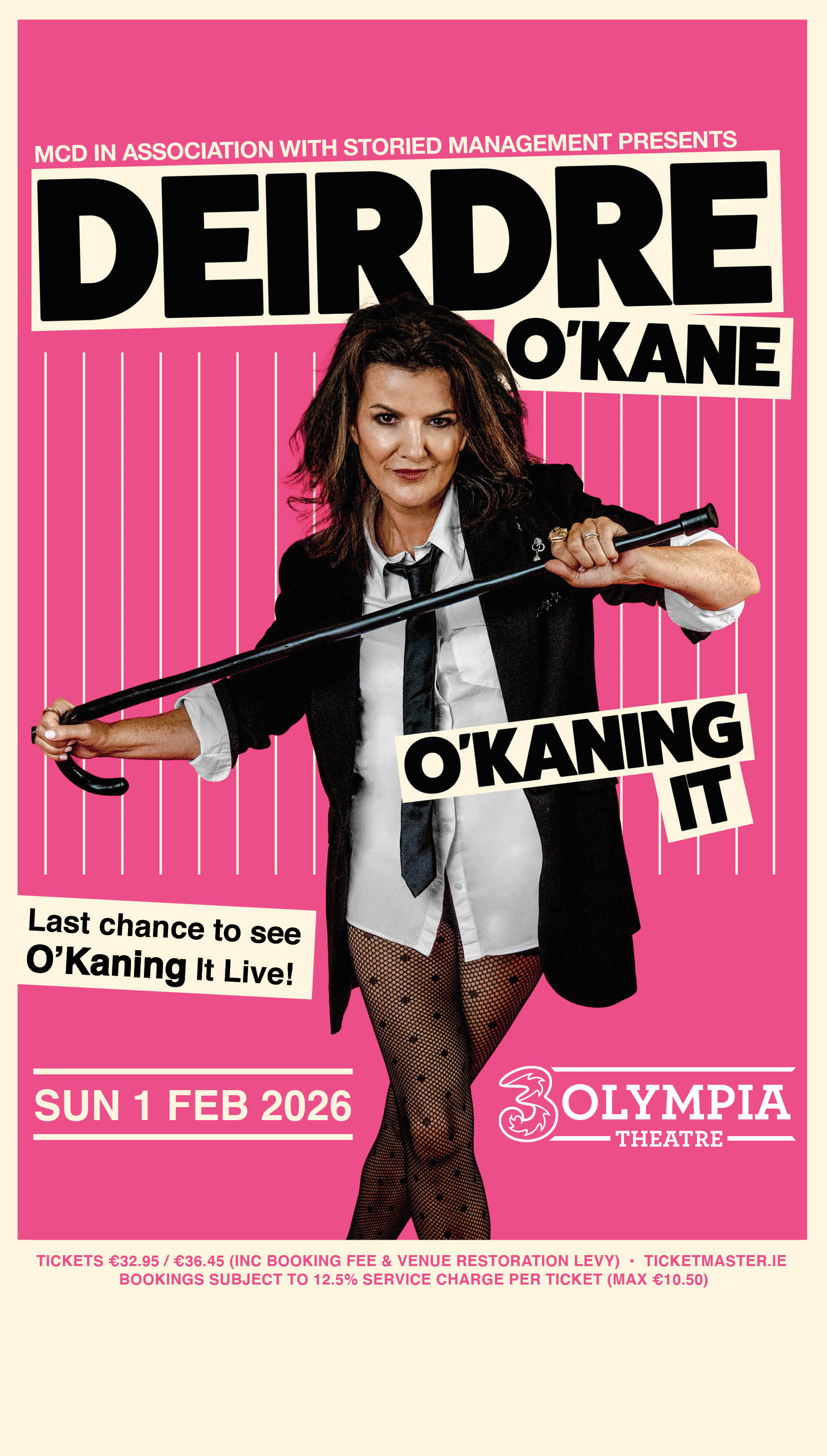 Don't miss your last chance to catch O'Kaning It, when Deirdre O'Kane returns to 3Olympia Theatre, Dublin on Sunday 1st February 2026, her 9th performance after a spectacular run of sold out shows here.