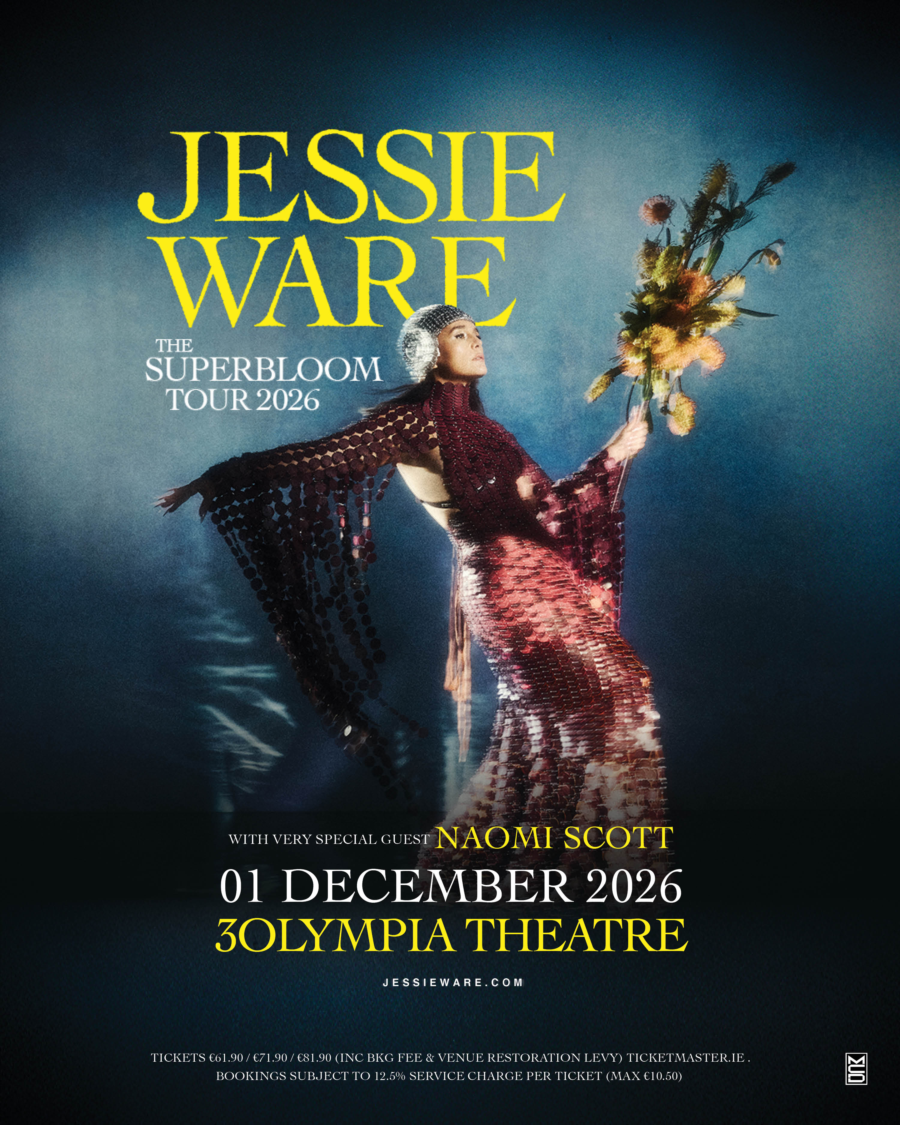 Ahead of the release of her sixth studio album Superbloom, English singer-songwriter Jessie Ware has announced The Superbloom Tour, which includes a show in the 3Olympia Theatre on 1st December 2026.