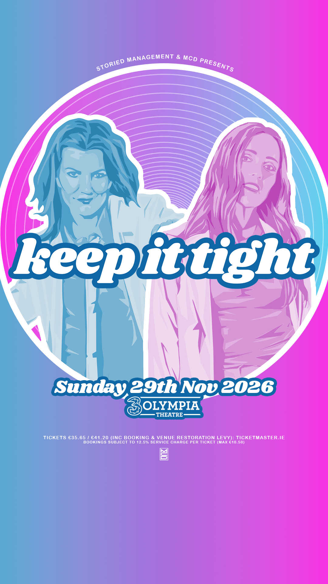 Queens of Irish comedy, Deirdre O’Kane and Emma Doran, are bringing their hit podcast Keep It Tight back to the legendary 3Olympia Theatre Dublin, on Sunday 29th November 2026.