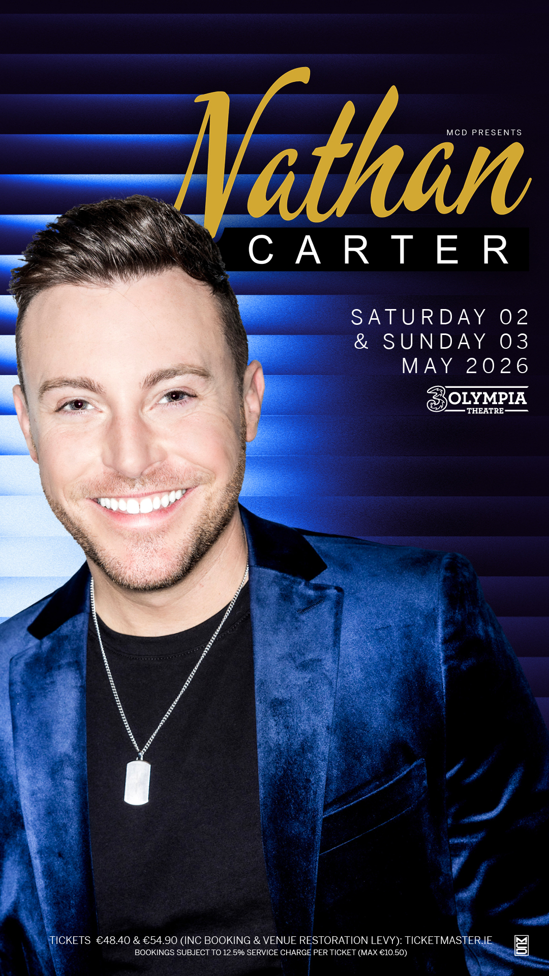 Nathan Carter has announced he’ll bring his unique blend of country, pop and folk music to 3Olympia Theatre, Dublin on Saturday 2nd & Sunday 3rd May 2026.