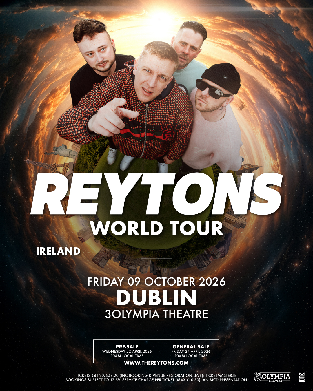 From topping the UK charts as a completely independent act to headlining major festivals and performing a capacity concert at the legendary Wembley Arena in 2025, The Reytons have defied every industry expectation. Having hurdled every obstacle with nothing but blue-collar grit and determination, the band—comprising Jonny Yerrell, Joe O'Brien, Lee Holland, and Jamie Todd—is now ready to take their "all-killer, no-filler" sound global. The Dublin date forms a key stop on the band’s highly anticipated first-ever World Tour. The global run kicks off stateside this summer with shows in Dallas, Boston, New York, and LA, before heading to Japan, Australia, and New Zealand. The tour sees the band return to the UK and Ireland for their biggest headline shows to date—including landmark venues like Manchester’s Co-op Live and London’s Alexandra Palace—before concluding in Europe in February 2027. The announcement comes on the heels of their fourth studio album, ‘A Love Letter To A Broken Town’, due for release this July. Rooted in the grit, humour, and honesty of everyday life, the new record sees the band staying true to their South Yorkshire roots while pushing their sound forward with newfound confidence.